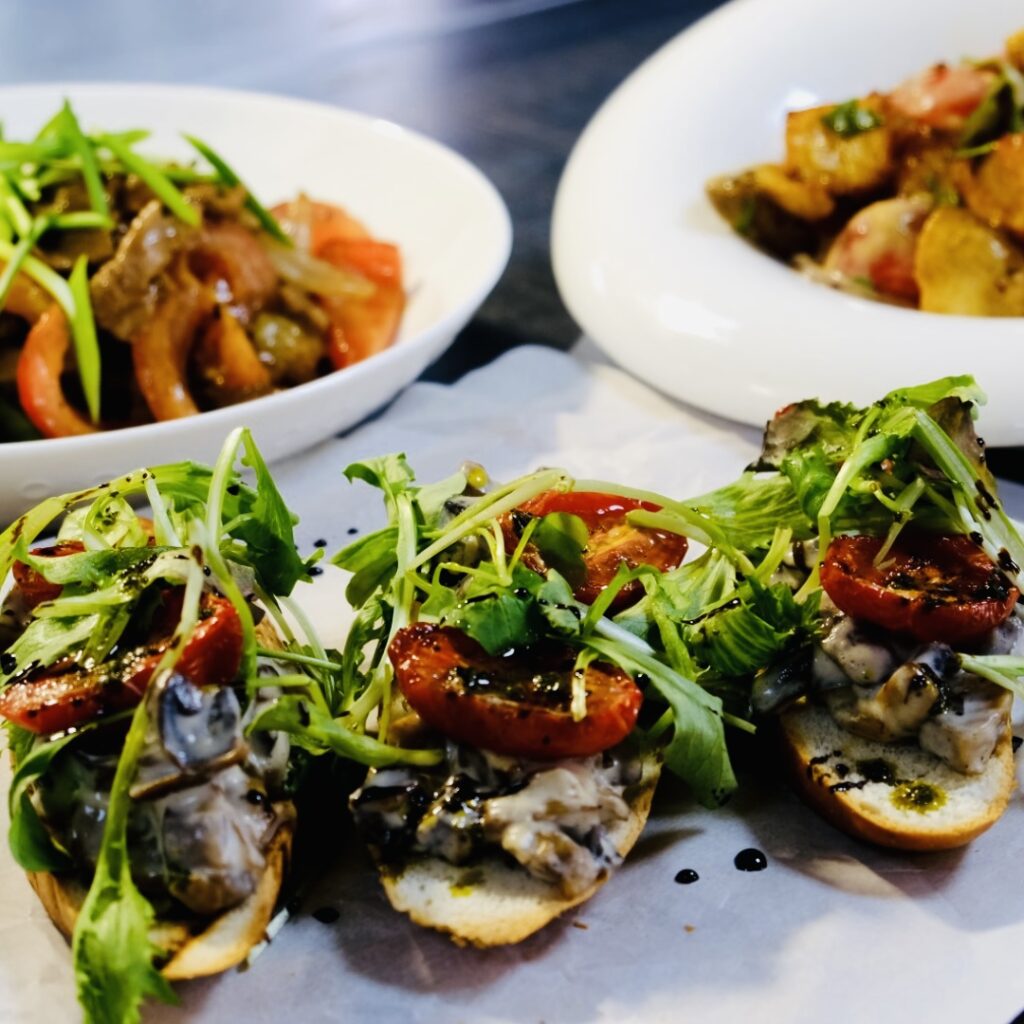 | Брускеты с грибами | 2250 тг | багет, грибной жульен |